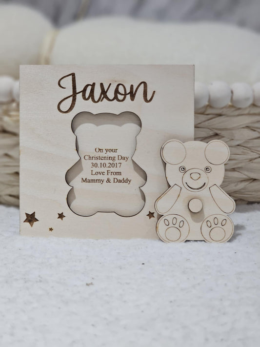 Wooden Personalised Bear Christening New Baby Gift