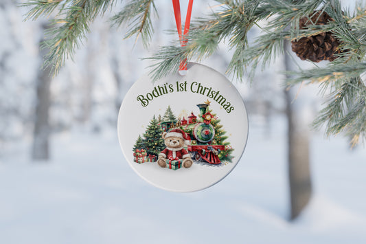 Personalised Pink Train Ceramic Bauble Christmas Tree Decoration