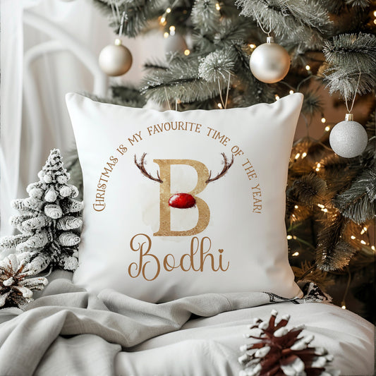 Personalised Sketchy Style Reindeer Alphabet Christmas Cushion