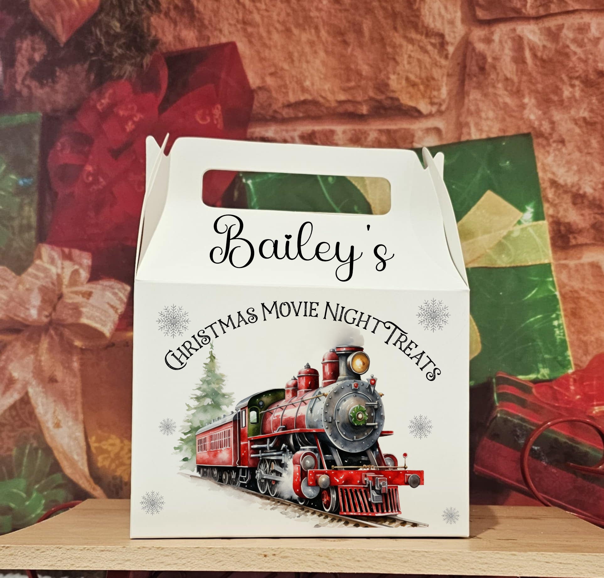 Please enter the name to be printed i.e. Bailey. You can also personalise the 'Christmas Eve Treats' wording. I.e. Christmas movie night treats, Christmas Snacks. Wording can be anything you choose for these